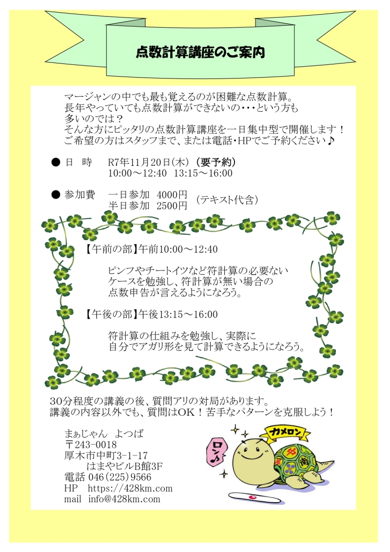 そんな方にピッタリの点数計算講座を一日集中型で開催します!