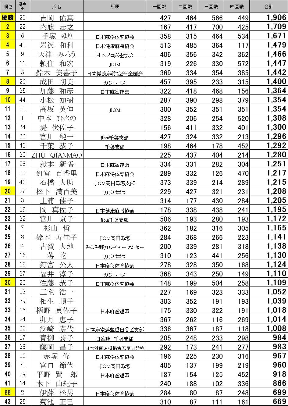 健康麻将 トピックス : 第20回国際公式ルール春季交流大会結果