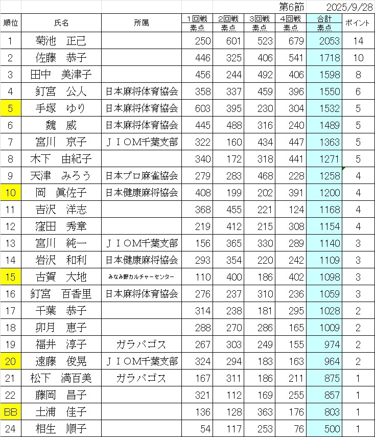 2025年9/28(日)西五反田にあります日本健康麻将協会五反田研修サロンにおきまして 第11期無双位戦第6節が開催されました。