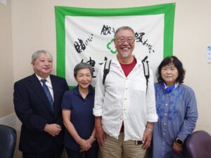 左から理事土屋政士、第2位佐藤恭子さん、第1位菊池正己さん、第3位田中美津子さん