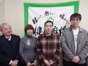 左から理事土屋政士、第2位岡眞佐子さん、第1位古賀大地さん、第3位ジューチャンマオさん