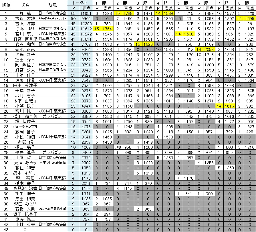 健康麻将 トピックス : 第11期無双位戦~第8節終了~